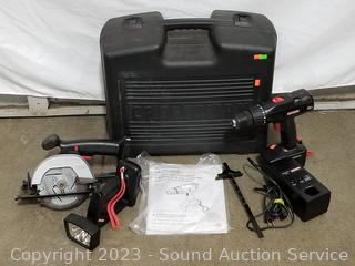Circular saw, drill, flashlight, charger, 1 battery, case. In excellent condition.