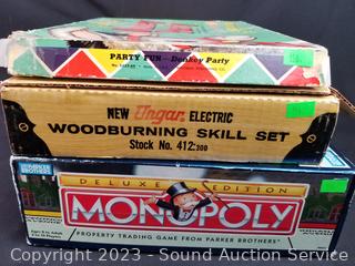 Lot #0156: Misc. Board Games, Wood Burning, Fabric Printing Sets