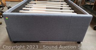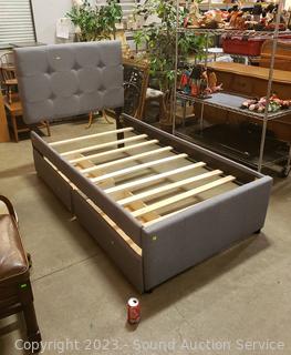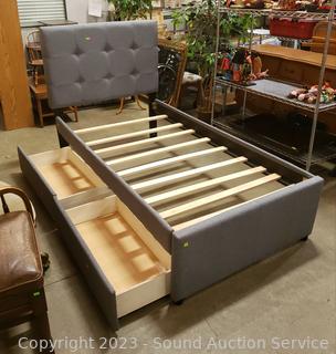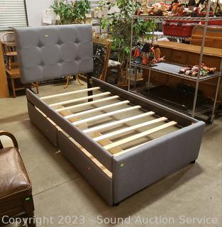 Lot #0014: Nice Twin Grey Upholstered Bed Frame w/2 Drawers