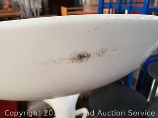 Some minor wear to the finish (scuffs, scratches), overall good condition. 30" to 37" T x 22" W at base, 22.5" to 30" to seat.