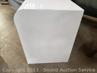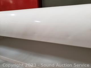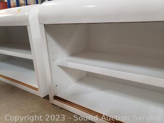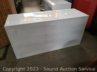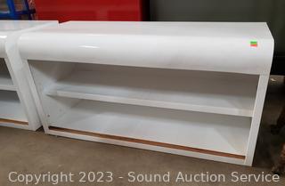 Single shelf, has one sliding door. Some minor wear to the finish. 18" x 46" x 14". Matches the previous lot.