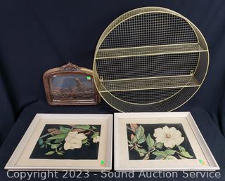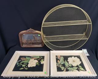 Lot #0213: Wire Mesh Shelf & 3pc Wall Decor