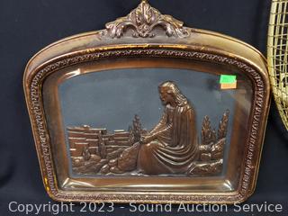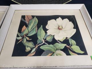 25" Dia x 5.5" wall mount shelf. Jesus artwork, 12" x 14". 2pc Floral prints 15.5" x 18.5".