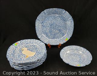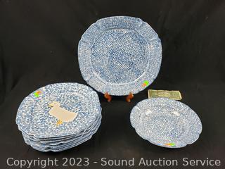 Lot #0115: 10pc Blue Spongeware Service Ware