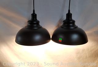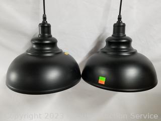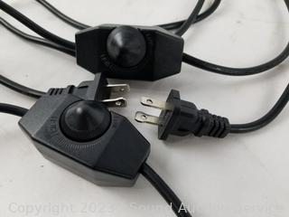 150" long cord, dimmer knobs. Both work. Some light scratches.