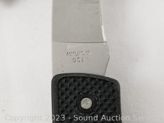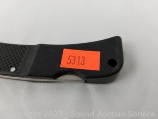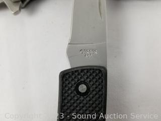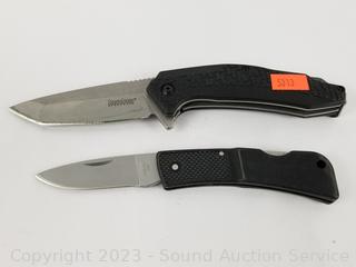 Kershaw assisted opening, 7.5" long, 3" blade. Gerber lock back 6" long, 2" blade. Both in excellent condition, very sharp.