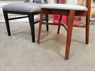 Created by consignor for casinos as an example, if they like them, they create more. So may be the only ones of their kind. Light gray 31." H x 19.5" W x 19" to seat. Multi-Gray 32" H x 20.5" x 19" to seat. Don't see any issues.