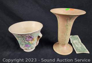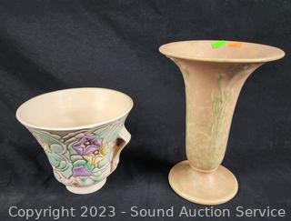 Lot #0214: 2pc Vintage Roseville Pottery Vase & Pot
