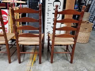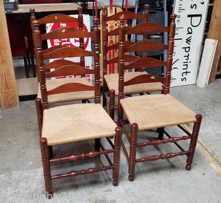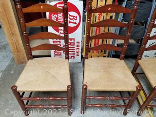 Lot #0049: 4 Natural Rush Seat Ladder Back Chairs