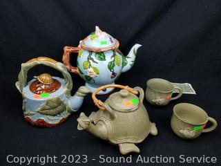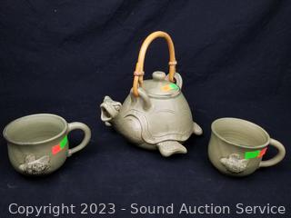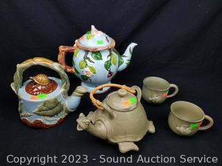 Pottery Turtle Teapot & 2 Cups, Floral Portugal & CBK China Teapots. Don't see any major issues.