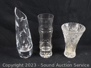 Stemware, vases, bowls, etc. Refer to photos for lot contents. Don't see any issues.