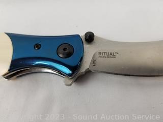 Nice CRKT Ritual Recurve Folding knife, 9.75" long, 4.25" blade & Spyderco Japan, 9.5" long, 4" blade. Both in excellent condition, very sharp.