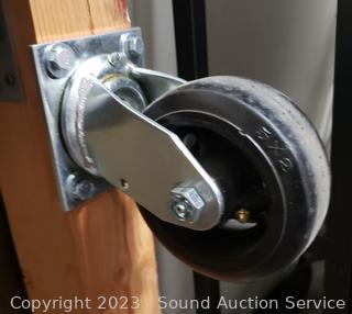 50" x 32". Very heavy. 5" casters.