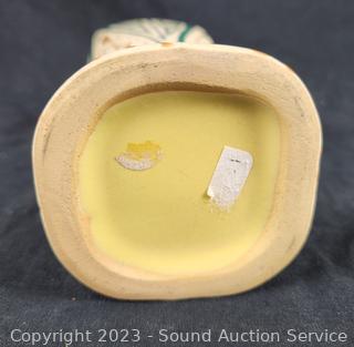 Unmarked, probably had a Roseville pottery sticker on the bottom at some point. Found the exact same online, very expensive! Don't see any issues. 8.5" H x 2.75" Dia.