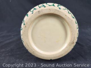unmarked probably had a Roseville sticker on the bottom at one point. Found exact same online, very expensive! Don't see any issues. 8.5" H x 3.75" Dia.