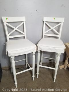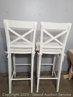 Lot #0028: 2 Distressed Ivory Pier-1 Bar Stools
