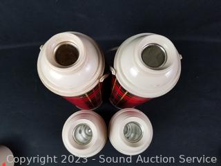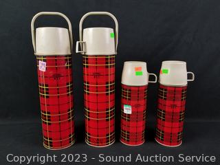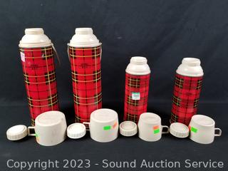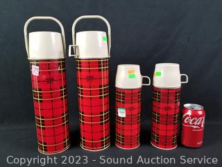 Lot #0245: 4 Vintage Plaid Print Thermoses
