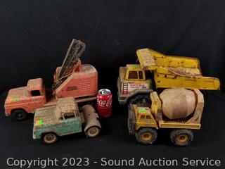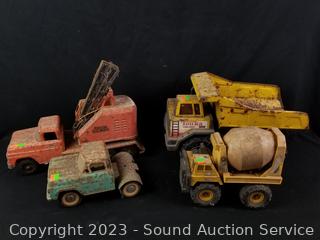 1 Nylint, 1 Remco, 2 Tonka. Various rust & wear from use. 5" to 10.5" H x 9" to 16" L x 5" to 8" W.