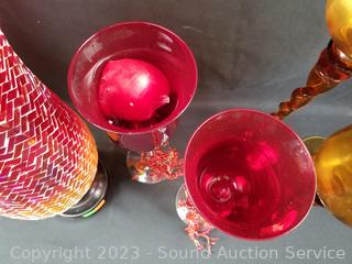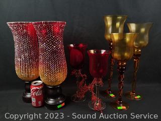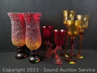 Lot #0094: 7pc Merigold, Mosaic, Red Candleholders, Hurricanes