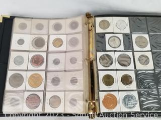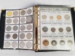 1981-2013 Chuck E. Cheese tokens, 2 Binders of assorted City Bus, Casino tokens. Refer to photos for more info.