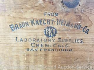 Lot #0189: Braun-Knecht-Heimann-Co. Laboratory Chemical Supply Wood Crate