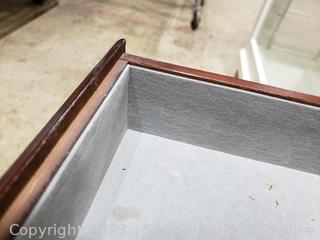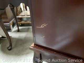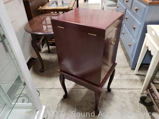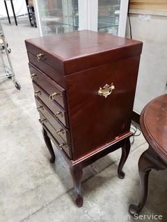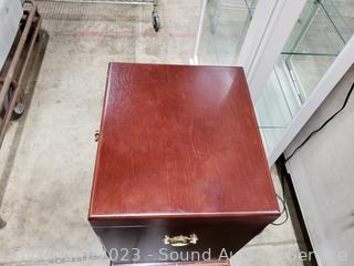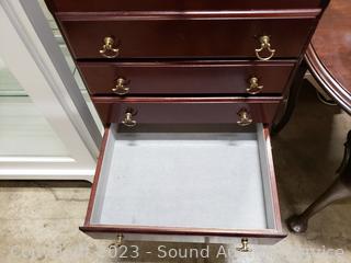 A few minor scuffs, overall great condition. 4 drawers, lift top. 32" H x 15" W x 13" D.