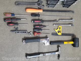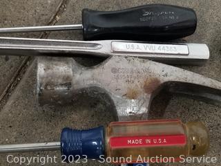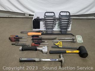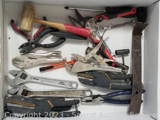 Screwdrivers, mallets, vise grips, wrenches & more. Refer to photos for lot contents.