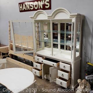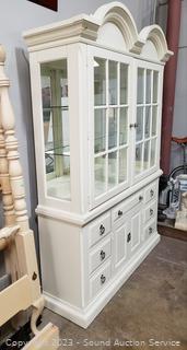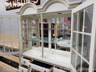 Lot #0006: Nice Broyhill Ivory Lighted, Mirrored Hutch