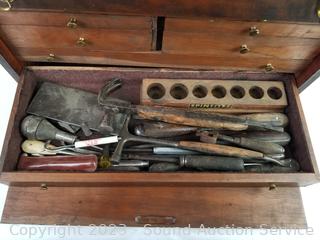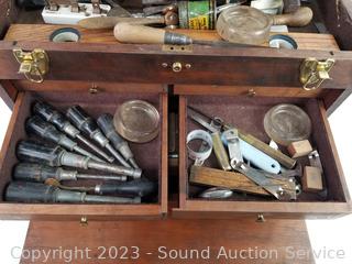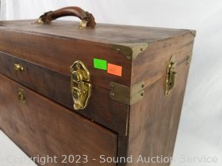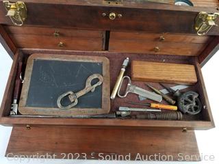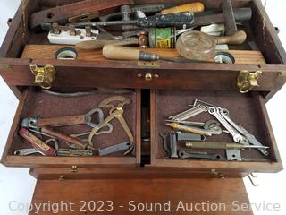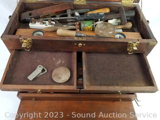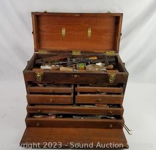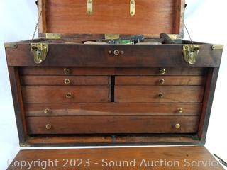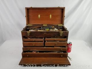 Lot #0115: Vtg. Teak Machinist Chest Full of Tools