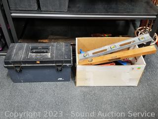 Lot #0123: 19" Toolbox & Box of Assorted Tools
