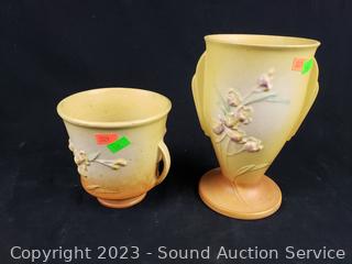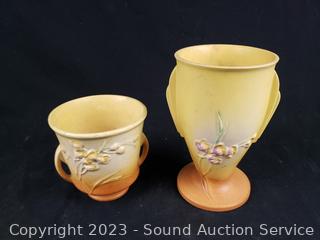 Lot #0168: 1937 Roseville Pottery Ixia Vase & Jardiniere