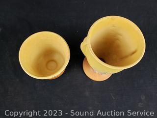 #854-7" Vase, #640-4" Jardiniere. Dirty from use, don't see any other major issues. 4.5" to 7.5" H x 4.5" Dia.