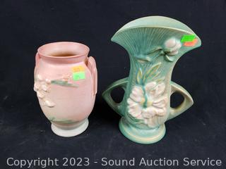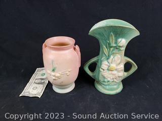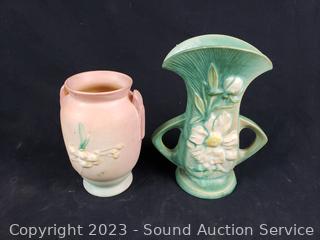 Lot #0170: 1942 Roseville Green Peony & 1937 Pink Ixia Vases