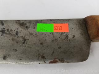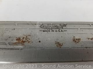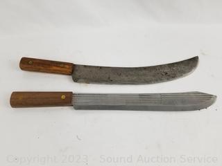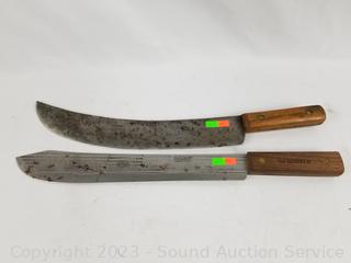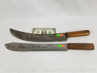 Tru-Edge Ontario Knife Co. USA, 19.5" long, 14" blade. Other unmarked, 19" long, 14" blade.