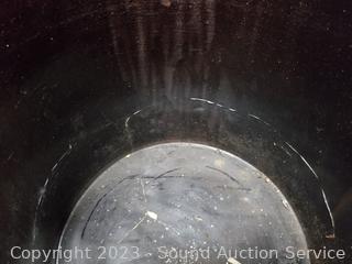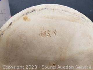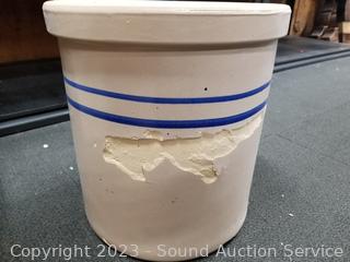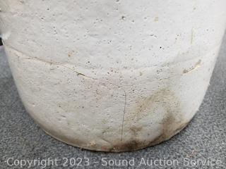 6 Gal is cracked around/through, repaired at one time. 4 Gal. Marshall Pottery has various chips. 2 Gal Crown has come small cracks. 9" to 13.5" H x 9" to 12" dia.