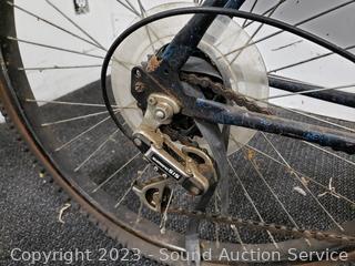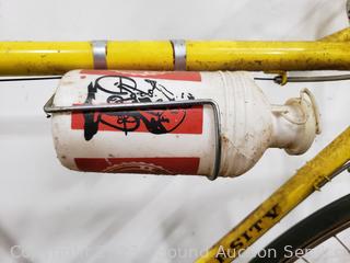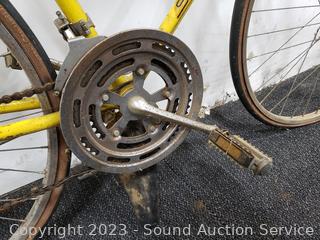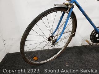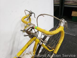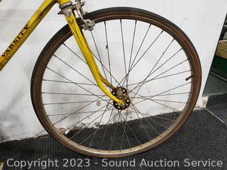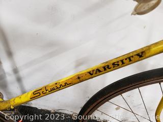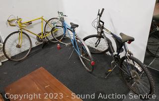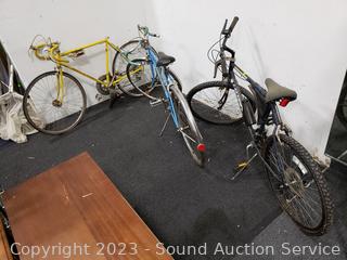 Huffy Caribou 26", Schwinn Continental 27", Schwinn Varsity 27" (missing seat). Various weathering wear to finish, flat tires, damaged grips, brakes on Schwinn bikes are not working properly. Shifters all appear to be functioning. Refer to photos for more info.