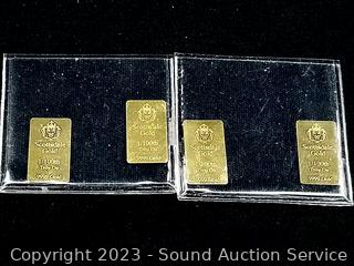 Lot #0064: 4 Scottsdale 1/100th Troy Ounce .999 Fine Gold Bars