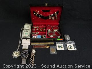 334 Lots including; Gun Cabinet, Waterfall Dresser, Curio Cabinets, Antique Monarch Cast Iron Stove/Range, Antique Oak Kitchen Queen Cabinet, Skutt 250V Elec. Kiln, Steel Parts Cabinets, Display Case, Tools, Knives/Hatchets, Comic Books, Coins, Jewelry, Sports Cards, Zodiac Swiss & Other Watches, Vtg. Rare Roseville Pottery, Bose Speaker System, Antique Butter Churns, Lathe, Planer, Kitchen Island Cart, Bookcases, Blacksmith Vise & Much More!!!