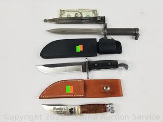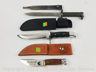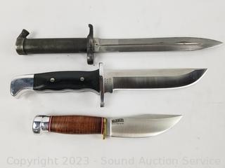 Lot #0228: Bayonet, Marbles & Buck Fixed Blade Knives