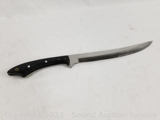 17" long, 10" blade. Leather sheathe. In excellent condition.