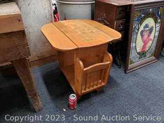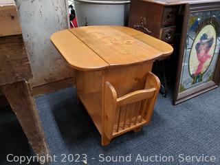 Lot #0035: Nice Pine Drop Leaf Magazine Side Table
