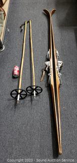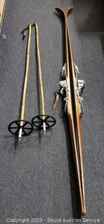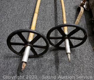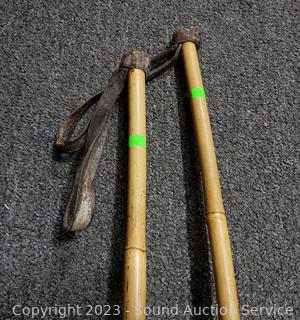Lot #0126: Pair of Vtg. Anderson Wood Ski's w/Bamboo Poles