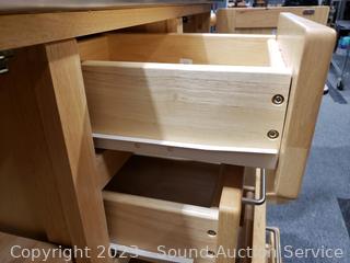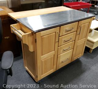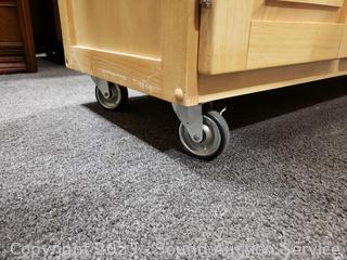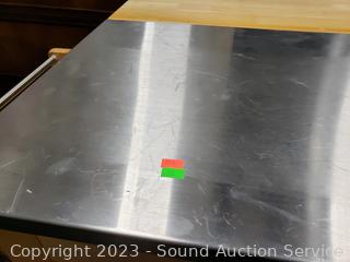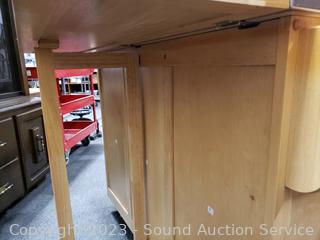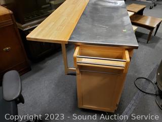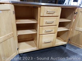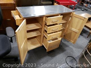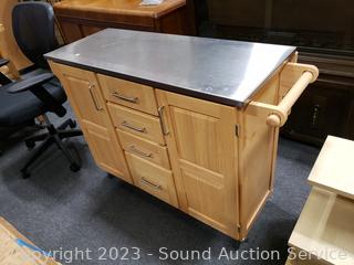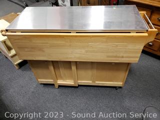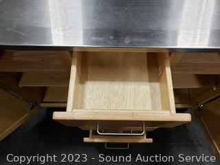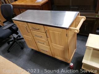 Lot #0022: Stainless Top Natural Wood Finish Kitchen Island Cart