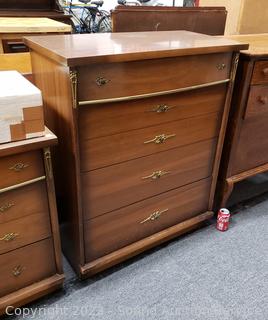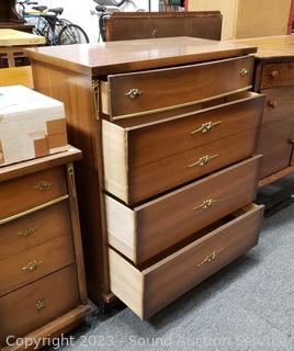 Lot #0007: Vtg. 4-Drawer Laminate Finish Dresser