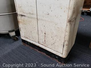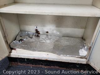 334 Lots including; Gun Cabinet, Waterfall Dresser, Curio Cabinets, Antique Monarch Cast Iron Stove/Range, Antique Oak Kitchen Queen Cabinet, Skutt 250V Elec. Kiln, Steel Parts Cabinets, Display Case, Tools, Knives/Hatchets, Comic Books, Coins, Jewelry, Sports Cards, Zodiac Swiss & Other Watches, Vtg. Rare Roseville Pottery, Bose Speaker System, Antique Butter Churns, Lathe, Planer, Kitchen Island Cart, Bookcases, Blacksmith Vise & Much More!!!