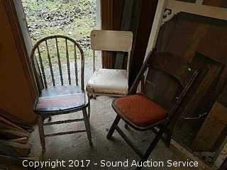 Lot #0296: (3) Vtg. Wooden Chairs - One Folding