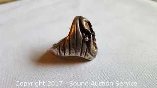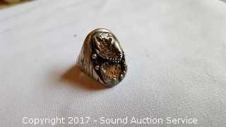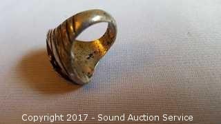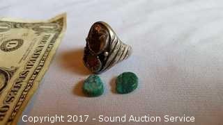 Lot #0069: Chunky Sterling Ring w/Turquoise Settings