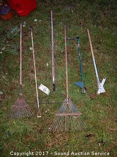 Lot #0252: Construction Rakes, Metal Lawn Rake & Claw Scraper