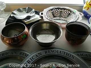 Includes 3 American Revolution Bicentennial Collector Plates - Pewter & Tile, & copper & stainless bowls