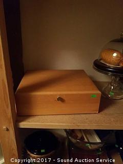 Comes in case. Complete service for 8, missing 2 of the smaller spoons. Also comes with serving pieces. 48 pieces total.